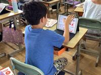 2年生の生活科の授業の様子です。2年生の生活科では、袋やゴムなどのおもちゃ作りに使える素材を使って、おもちゃを作っていくとともに、その改良・改善に取り組み活動に取り組んでいます。今後は、作ったおもちゃのお店づくりへと発展させていく計画です。