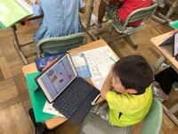 さらに、他の2本の直線の場合でも確かめていました。途中、互いの意見交換を行いながら、自分たちで学ぼうとしています。平行な2本の直線の性質を自分たちで見つけ出している4年生でした。