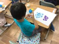 1年生の図画工作の授業の様子です。色紙をつかってちぎり絵のアジサイの作品づくりに取り組んでいました。子供たちは、集中して作品づくりに取り組んでいました。とても素敵な作品に仕上がりそうです。