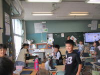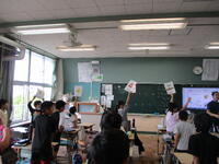 5年生の社会の授業の様子です。日本各地の気候を比較して、その特徴を話し合っていました。雨温図を見て、平均気温や降水量に着目して、その土地の気候の特徴を考えていきます。グループで話し合って、自分が気づかなかったことにも、気づいていきました。