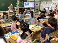 その中で、学年全体でのじゃんけん列車に取り組んでいました。体育ということもあり、じゃんけんは身体全体を使って行います。