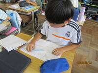 今日の算数は、学習のまとめと計算練習でした。今日も気温の高い日となりましたが、エアコンの効いた教室の中はしんと静まり、子供たちはそれぞれ自分の課題に集中して取り組んでいました。夏休みまであと数日。学習を頑張っている4年生です。