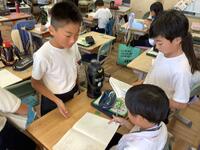 国語の物語文の学習です。授業の冒頭、子供たちが順番に音読をしていました。「 」の会話文を担当して読む子は、感情を込め、登場人物になりきって読んでいます。友達の音読を聞いて笑顔になったり、「劇みたいだね。」と感心したり、子供たちは物語の世界を楽しんでいました。