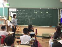 算数授業の様子です。小数、帯分数、仮分数の入り交じった数を数直線上に正しく表すために、どのように大きさを比べたらよいか考えていました。子供たちは解き方について意見を出し合い、その考え方に納得すると、どんどん自分の力で問題を解き進めていました。発表にも意欲的な子が増えてきています。