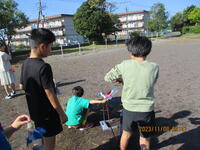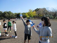 4年生理科で前時に製作した改造ロケットを発射しました。