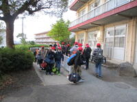 6年生の修学旅行が始まりました。朝焼けの美しい校庭で、出発の集いを行いました。実行委員の言葉や司会ぶりから、スローガン「班で協力し合って、メリハリをつけた学びのある修学旅行にしよう!」を意識し、充実した修学旅行にしようという意気込みが伝わってきました。