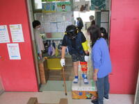 4年生は、総合的な学習の時間で「福祉」について学んでいます。本日は、社会福祉協議会の皆様に御協力いただき、「高齢者体験」授業を行いました。手首と足首、膝にそれぞれおもりをつけ、おもりの入ったベストも着用し、手には軍手、イヤーマフとゴーグルも用意してもらい、身につけます。「え?こんなに動きにくいの?」「もう少し近くで話して!よく聞こえないよ!」など、子供たちはいつもの体との感覚の違いに驚いていました。教室を出たところに設置した段差や階段、安定感のない床の上を歩き、「こんなに大変だったんだね。」とつぶやいていました。体験することで初めて気付くこと、納得すること、理解できることがたくさんありますね。