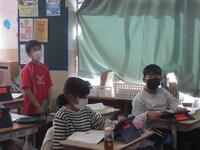 1年生国語の授業の様子です。色々な乗り物がどのような働きをしてどのようなつくりになっているのかをノートにまとめています。スーパーアンビュランスという車、救護所という場所、急行など、初めて聞く言葉がたくさんありましたが、しっかりと意味が分かり理解できました。
