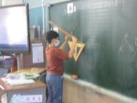 6年生算数の授業では、一つの点を中心に拡大図を作図しています。コンパスを使って2倍、3倍と2つの辺の長さを測っていくと簡単に描けますが、ポイントは2つの辺をあらかじめ長めに引いておくと描きやすいことが分かりました。