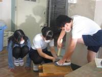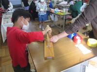 4年生図工の授業では、のこぎりを使って木材を切り、パーツを組み合わせて作る「コルク伝言板の制作に取り掛かっています。まずは木材をまっすぐ切るために、友達と協力しながら作業をしています。どんな形の掲示板ができるか楽しみです。