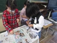 5年生図工の授業の様子です。スペシャル伝言板を仕上げています。色塗りを終えたらニス塗りです。ホワイドボードを型どおりに切って貼り付け、穴をあけてひもを通して完成の予定です。ニスを塗ると高級感が出てきますね。