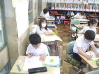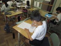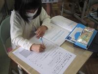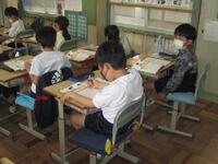 3年生国語の授業の様子です。3つの言葉を文章中の括弧に当てはめ、意味の通じる正しい文章を作っています。