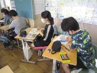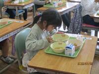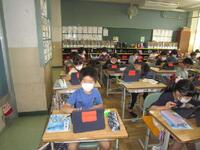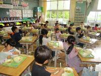 1年生が入学してから約1ヶ月。学校生活にもずいぶん慣れてきました。給食の準備もとても早くなりました。食事中は黙食ですが、その分、おいしさをしっかり味わいながら食べています。毎日の献立を楽しみにしている1年生です。