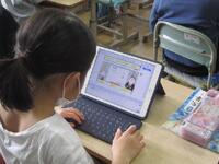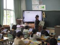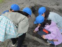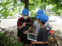 4年生の理科の授業では、運動場で「春の生き物さがし」が行われていました。「あ!砂場の中で何かが動いた!幼虫がいるぞ!」「この花、きれいだね。なんていう名前かな?」「見て!こんなに小さいナメクジ発見!!」夢中になって活動しています。iPadが大活躍していました。