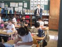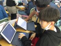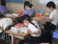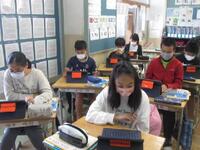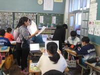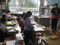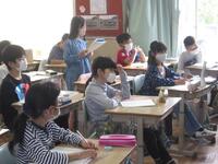 3年生国語の授業は慣用句の学習です。先生が学生時代に体験したことを「○から火が出る」という慣用句を使って紹介しました。○には「顔」という言葉が入ることが分かりましたが、辞書を使ってどのような意味なのかを自分で調べて理解を深めました。