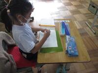 2年生図工の授業の様子です。先生が読んだお話の中の「火の鳥」を想像しながら描いています。羽が大きく、しっぽが長いのが特徴のようです。見たことのない鳥ですが、みんなしっかりとイメージして描くことができていました。