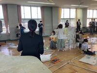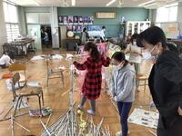 4年1組が市内小中学校の多くの先生方に図工の授業を公開しました。新聞紙を細長く丸めて立体物を作りました。色々悩みながらも工夫がたくさん見られました。みんなとても楽しそうに活動できていまいた。もっと時間があればさらにいい造形物ができたようです。