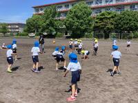 1年生の体育の授業の様子です。今日は、学級を2チームに分けてクラス対抗でドッジボールを行いました。やわらかいボールなので、あたってもいたくありません。気持ちよく体を動かせたのではないでしょうか。