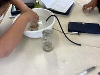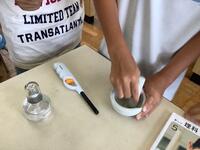 6年生理科で呼気に酸素が含まれていることを検証しました。酸素の含有率はロウソクの燃焼時間で計算します。