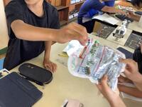 4年生理科で色々な電池の電圧を測定しました。電圧計は山田中学校から借りました。