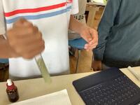 5年生理科で栄養のない土で発芽した植物の子葉について、養分がないことを検証しました。手法はヨウ素反応と燃焼を使いました。