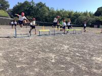 10月12日(木)2,3、4校時に5年生がクラスごと、体育実技指導協力者3名の方をお招きして、陸上競技(ハードル走)の指導をしていただきました。授業では3歩でスムーズに走り抜けることを意識して学習を進めていきました。授業の終盤ではスピードにのってリズミカルに走り越える感覚を味わうことができていました。