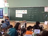 4年生「外国語活動」の様子です。会話を通しながらオリジナルピザを作っていました。ほしい野菜、果物、その数を英語を使って会話をし、作っていく活動です。タブレット上でピザを作成することもできるため、子供たちは意欲的に取り組んでいます。どんなピザができたのでしょう。
