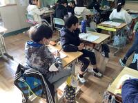 集中して作業に取り組んでいた6年生です。けがには十分注意して、自分の納得できる作品を仕上げてほしいと思います。できあがった文箱を活用するのも楽しみですね。