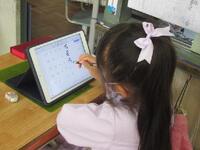 1年生算数の授業は、繰り下がりのある引き算の30問テストをメタモジ上で行っています。今までの学習を生かして、頭の中で素早く計算して答えを導き出していました。メタモジの操作も完璧です。