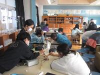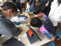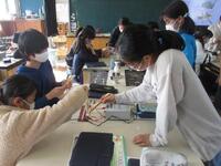 6年生理科の授業の様子です。発電の学習を終え、今日は電気を熱に変換する実験をしています。電源装置に金属と電熱線を設置し、発泡スチロールが電熱線で切れるかどうか(熱に変換したかどうか)を確かめています。切れ味がよくとても驚いていました。