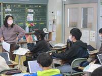 2年生国語の授業は、贈り物を届ける地蔵様の様子やじいさまとばあさまの様子を読みとっています。どんなことが起きたのか、何を届けたのかなど、教科書から様子が分かるところを詳しく抜き取り、ワークシートにまとめています。