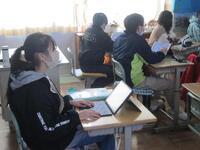 6年生社会の授業の様子です。明治維新以降、日本の産業はめまぐるしく発達していきましたが、人々の生活はどのように変化していったのかを追究しています。動画にヒントがあり、子供たちは一斉にカメラ機能でテレビ画面を撮影していました。動画、教科書、資料集から自らの考えをまとめています。