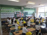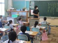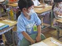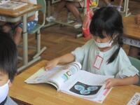 1年生国語の授業の様子です。「かえるのかさ」の読み取りをしています。かさがどうなったのか、誰が何を言ったのかなど、一文一文をしっかりと読んで内容を把握しています。