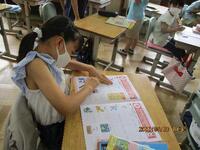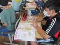 5年生外国語の授業の様子です。英文を聞き取り、聞き取った内容や分かったことをワークシートにまとめていきました。すべては分からなくてもキーワードとなる英単語から内容を把握することに努めていました。