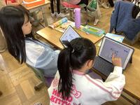 4年生の社会の授業の様子です。地域の発展に尽くした県内の先人について、調べて新聞にまとめていました。新聞の作成には1人1台端末を利用しています。開発、教育、医療、文化、産業などにおいて、県内出身の様々な先人が、苦心や努力を重ねて業績を成し遂げたことを学ぶことがねらいです。