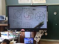 3年生「算数」の様子です。円を使っての模様作りをしていました。