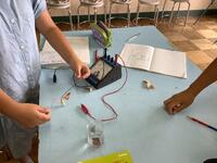 2年生の生活科の授業の様子です。プールからヤゴをとってきて、その観察をしていました。体のつくりなどを観察しながら、1人1台端末を活用してシートにまとめていました。