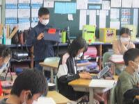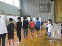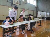 6年生が選挙講座の授業を受け、選挙や投票の仕組みについて楽しく学びました。講義の後、実際に「給食デザート」を1つ選ぶための投票を行いました。ガトーショコラ、スイートポテト、クレープ、ミカンタルトの4つのデザートの中から、そのデザートを支持すする立候補者の演説を聞き、実際の機材を使用しての投票を体験しました。また、受付や選挙立会人などの仕事も体験することができました。投票の結果、選ばれたのはガトーショコラ。給食に出される日が楽しみですね。
