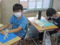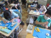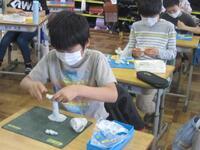 4年生図工の授業の様子です。粘土で土台を作り、バランスを取りながらつなげて支えて作品を作っています。いかに立体的な作品が完成するか楽しみです。
