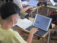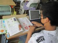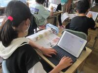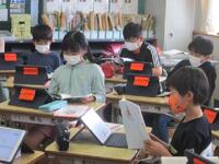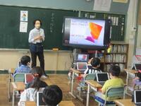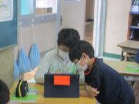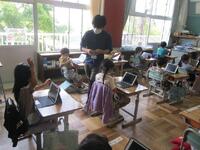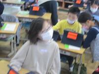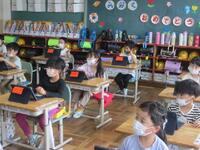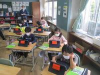 1年生がいよいよタブレットを使い始めます。正しい使い方やルールについて、ICT支援員の齋藤さんから説明を受けています。6年間使う大事な学用品です。大切にそして学習効果を高めるように使っていきましょう。