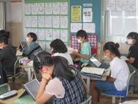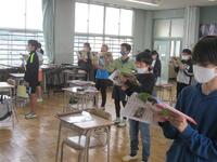 6年生音楽の授業の様子です。「明日という大空」の2部合唱をしています。マスクを着用しての発声でも伸びやかにきれいな歌声が響いていました。練習後は録音して自分たちの歌声を聴きました。