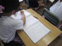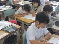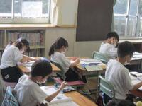 6年生理科の授業の様子です。消化と吸収について教科書を見て先生の説明を聞きながらワークシートにまとめています。食べたものが口からどのように運ばれてどのような消化液によって吸収されていくかがポイントです。