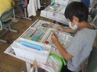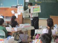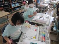 3年生図工の授業の様子です。2色を上手に混ぜて自分で色を創り出しています。赤と黄の絵の具を混ぜて3色の違う色のオレンジ色に挑戦です。赤を多くするか黄を多くするかで変わってきますね。
