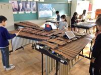 3年生「音楽」の様子です。合奏の練習をしていました。パートごとに分かれた練習の後、みんなで合わせていました。それぞれの楽器の音色が重なることで、素敵な演奏となっていました。