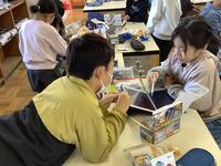 2年生「学活」の様子です。学級で「出しもの大会」をやる、とのことで、その準備に取りかかっていました。「十二支のはじまりのペープサートをやるんだ。」とペープサートの準備を一生懸命にしている子もいます。合奏をするのでしょうか、みんなで合わせて練習をしていました。どんな出し物大会となるのでしょう。楽しみです。