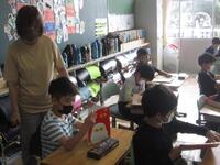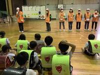 警察の方、防犯パトロールの方を招いて防犯教室を行いました。ついて「いか」ない、「の」らない、「お」おごえをだす、「す」ぐにげる、「し」らせる、という「いかのおすし」の約束を確認しました。また、防犯ブザーの使い方や知らない人に声を掛けられたときの対応の仕方を練習しました。