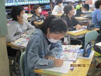 6年生書写の授業の様子です。「風」という字を書いていますが、「難しい!」という声がたくさんあがっていました。文字のバランスと筆使いに気を付けている様子がうかがえました。