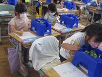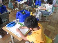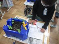 1年生生活の授業の様子です。芽が出た朝顔の観察です。かたちや色、茎や芽など、自分の目でしっかりと見てスケッチしています。これからの成長が楽しみですね。