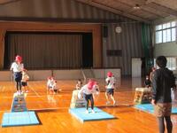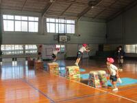 1年生体育の授業は、跳び箱運動の「跳び上がり下り」という技に取り組んでいます。先生が模範となる演技をしたあとに、実際にやってみました。みんな怖がらずに両手をしっかり着いて、両足で跳び上がり、目標としている着地地点に上手に下りていました。