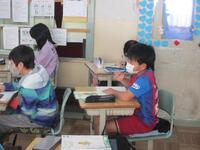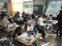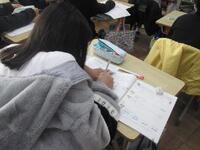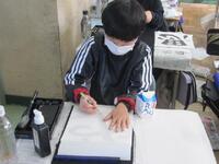 3年生書写は、書き初めの練習です。ます、「思いやり」の4文字を半紙に1枚ずつ骨書きしています。そして、太筆を使ってゆっくりり丁寧に書きました。次回は床に正座して長い紙に書く練習をするようです。ぜひ冬休みにも挑戦してください。